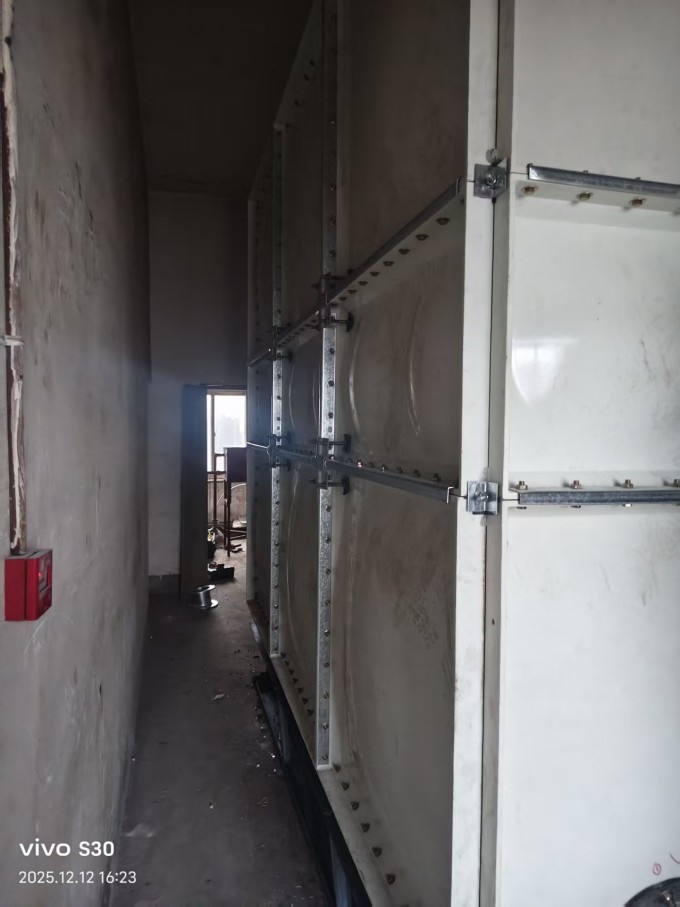 SMC水箱組裝就是用模壓的小塊,到施工現(xiàn)場組裝成大的水箱。外面要用角鋼進(jìn)行固定的,角鋼搭出個(gè)水箱模型,在上面鋪玻璃鋼平板,拼縫處再現(xiàn)場多糊幾層方格布...